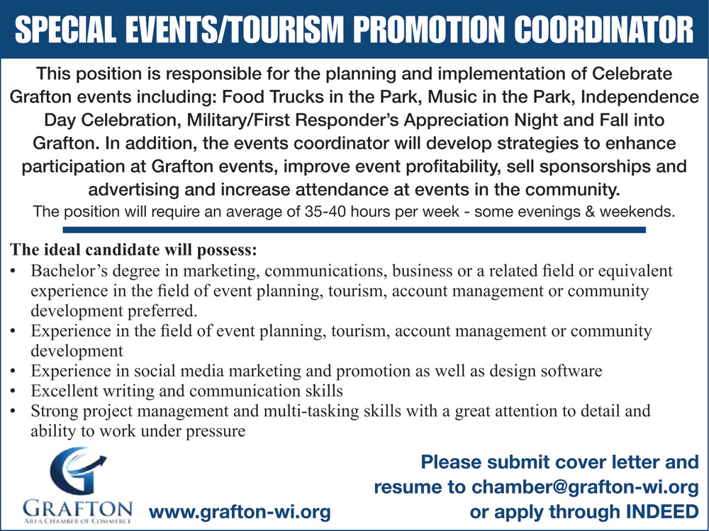 Oct 02, 2025. Grafton Area Chamber Of Commerce Coordinator Jobs from Southeast Wisconsin Jobs