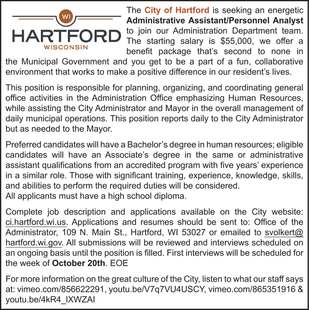 Oct 08, 2025. City of Hartford Administration Jobs from Southeast Wisconsin Jobs