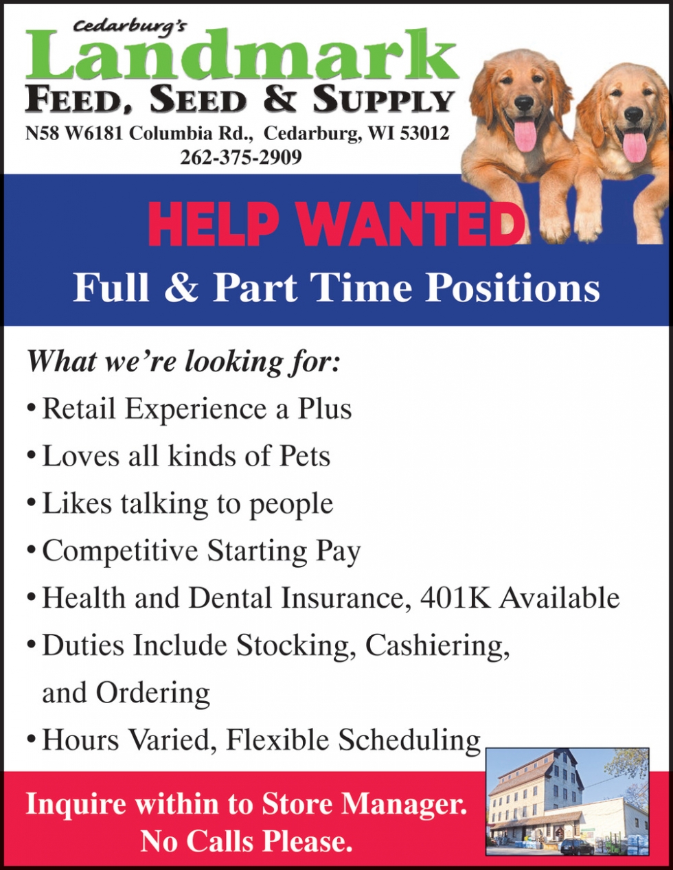 Jobs for Cedarburg's Landmark Feed, Seed & Supply in Cedarburg, WI