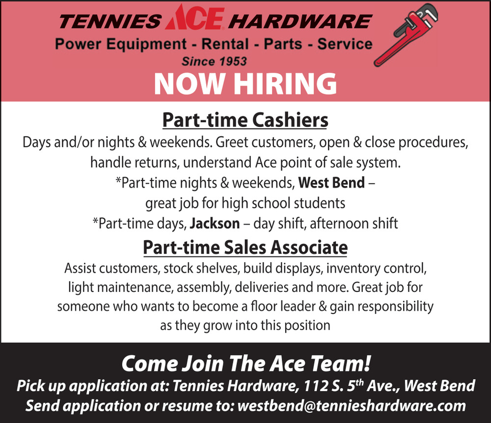 Jan 29, 2026. Tennies Ace Hardware Sales & Marketing Jobs from Southeast Wisconsin Jobs
