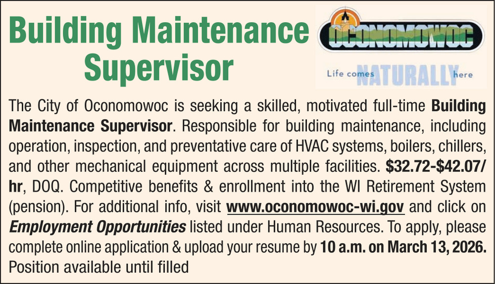 Feb 25, 2026. City of Oconomowoc Maintenance Jobs from Southeast Wisconsin Jobs